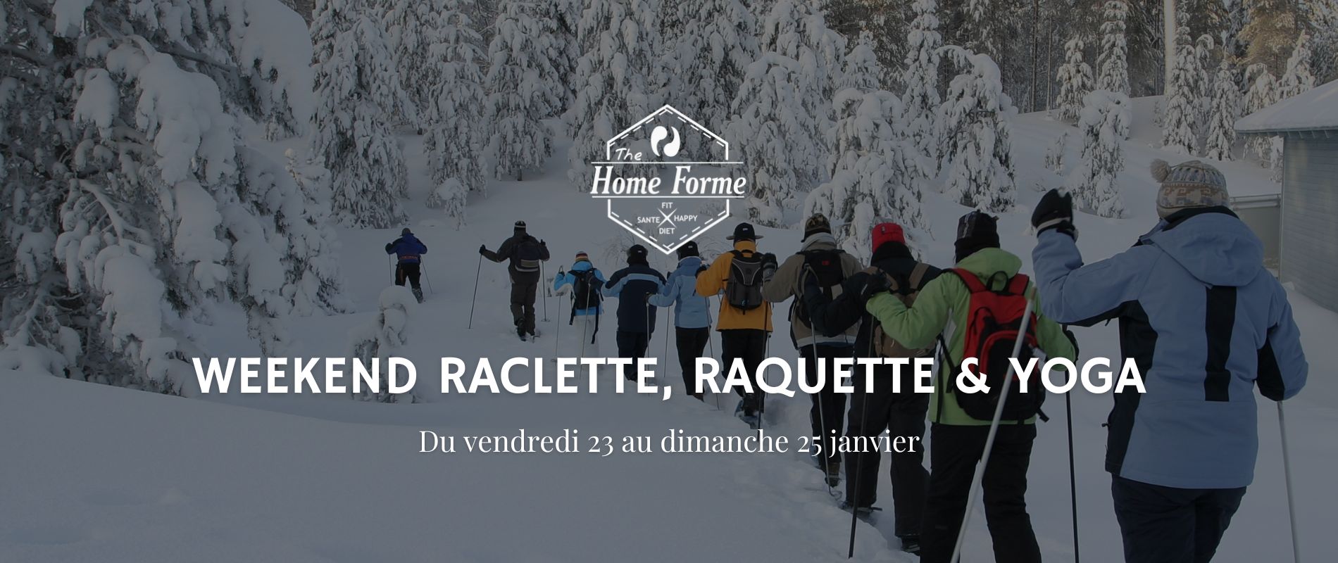 Home Forme souhaite vous convier à un week-end hivernal ! Nous vous proposons donc pour cet hiver un WEEK-END TOUT COMPRIS sur le thème RACLETTE, RAQUETTE et YOGA ! Venez profiter d’un week-end convivial pour vous ressourcer et découvrir les bienfaits de la montagne. Laissez vous happer pour le rythme des montagnes, et profitez de ce week-end de bien-être absolu.